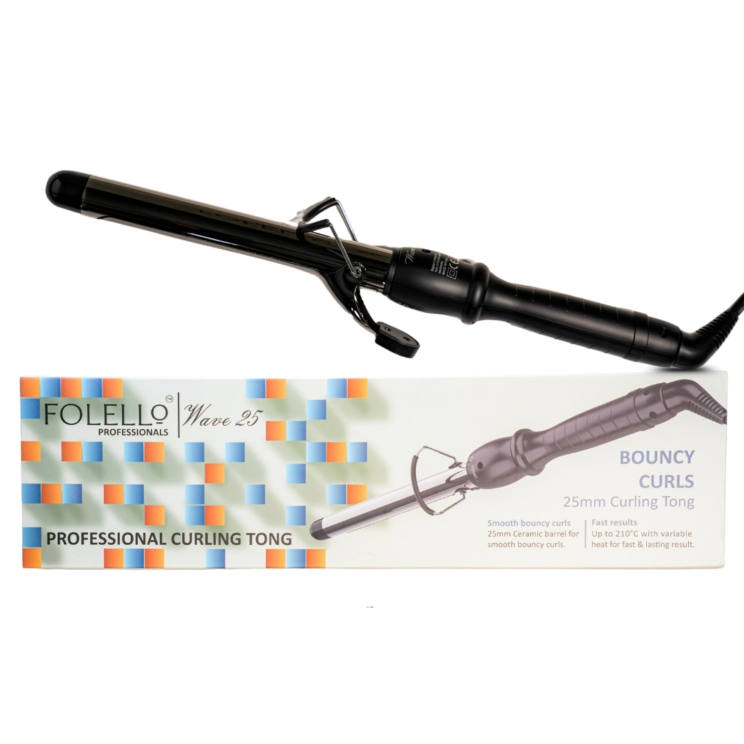 Wave 25 - Curling Tong for Professionals, Salons and Home Use - Ergonomic Design & Comfortable Grip - Hair Curling, Styling - 25MM Barrel, Black