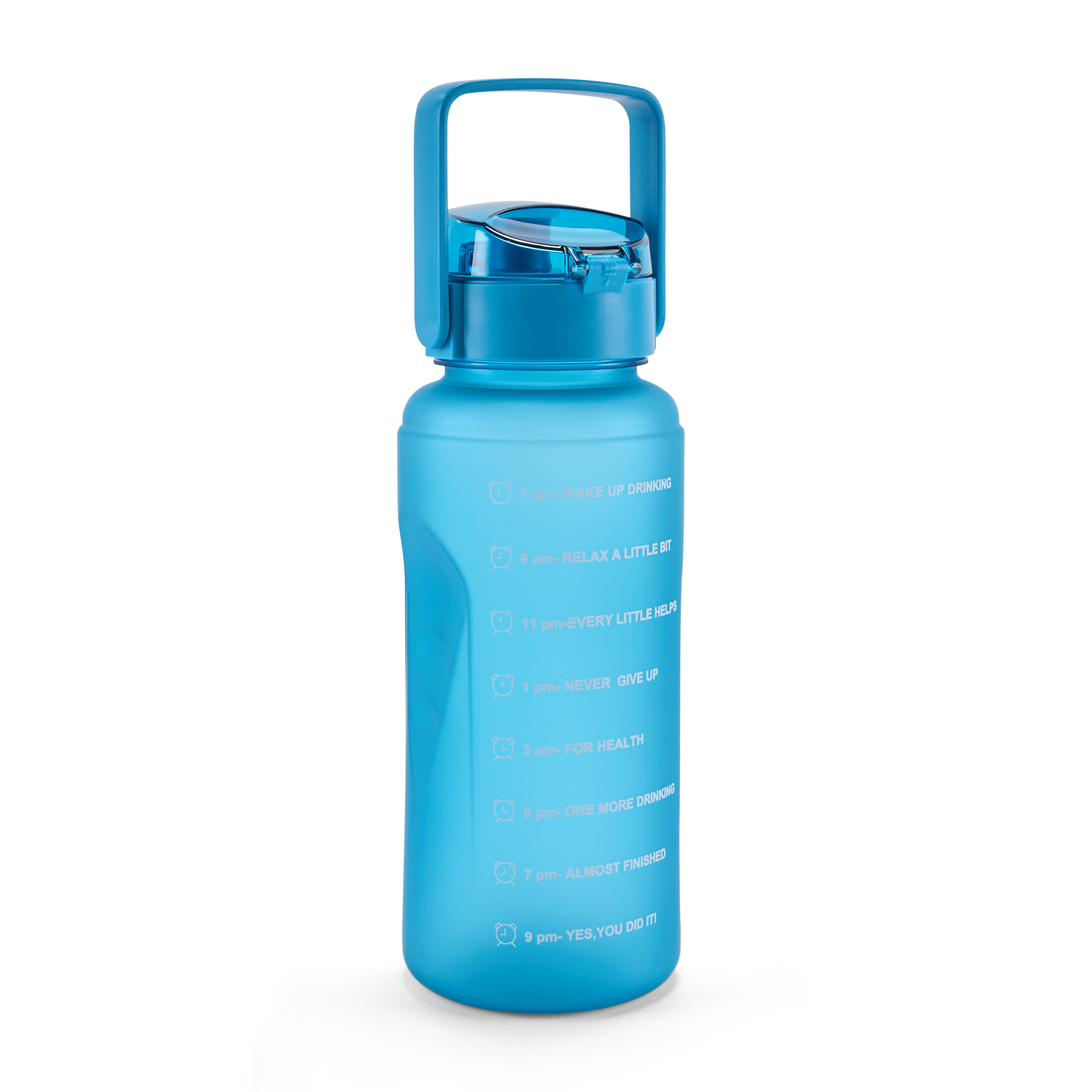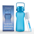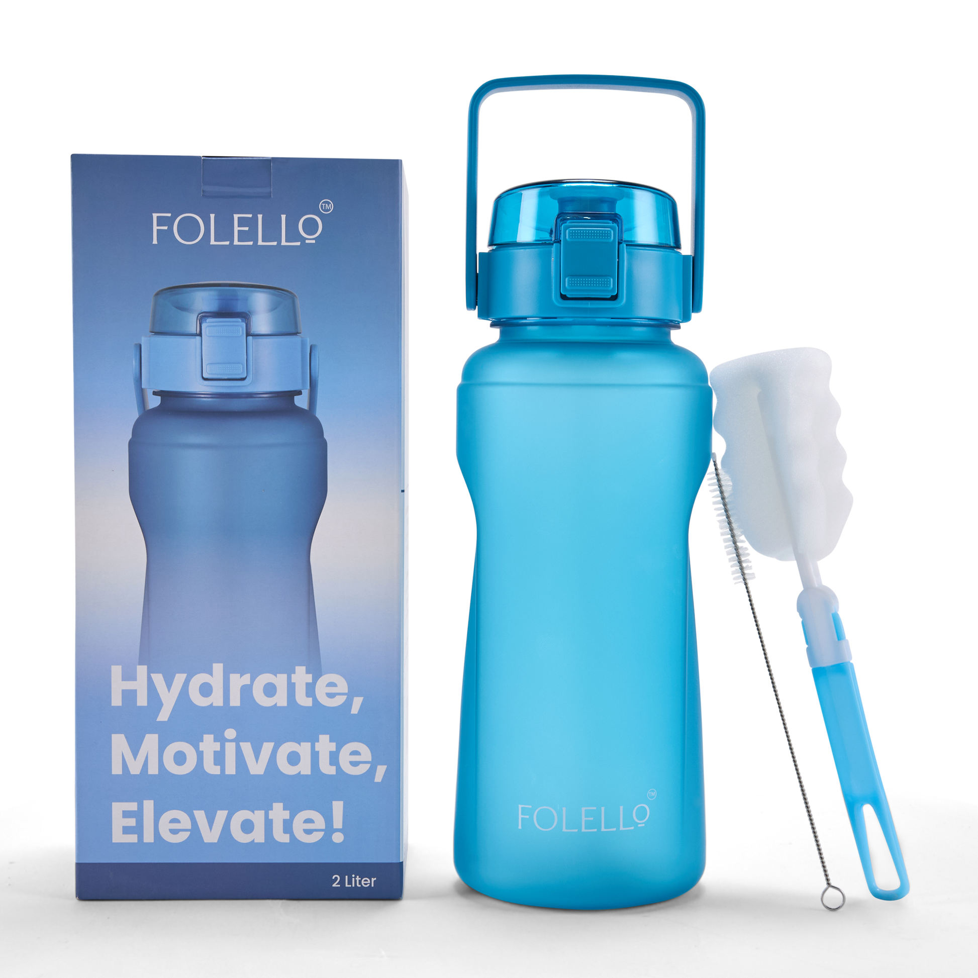 FOLELLO 2L Sports Water Bottle with Motivational Time Marker | Leakproof & Durable BPA-Free Plastic | Wide Mouth Design with Carry Handle | Perfect for Gym, Office, Travel | Stylish Blue 2 Litre Bottle