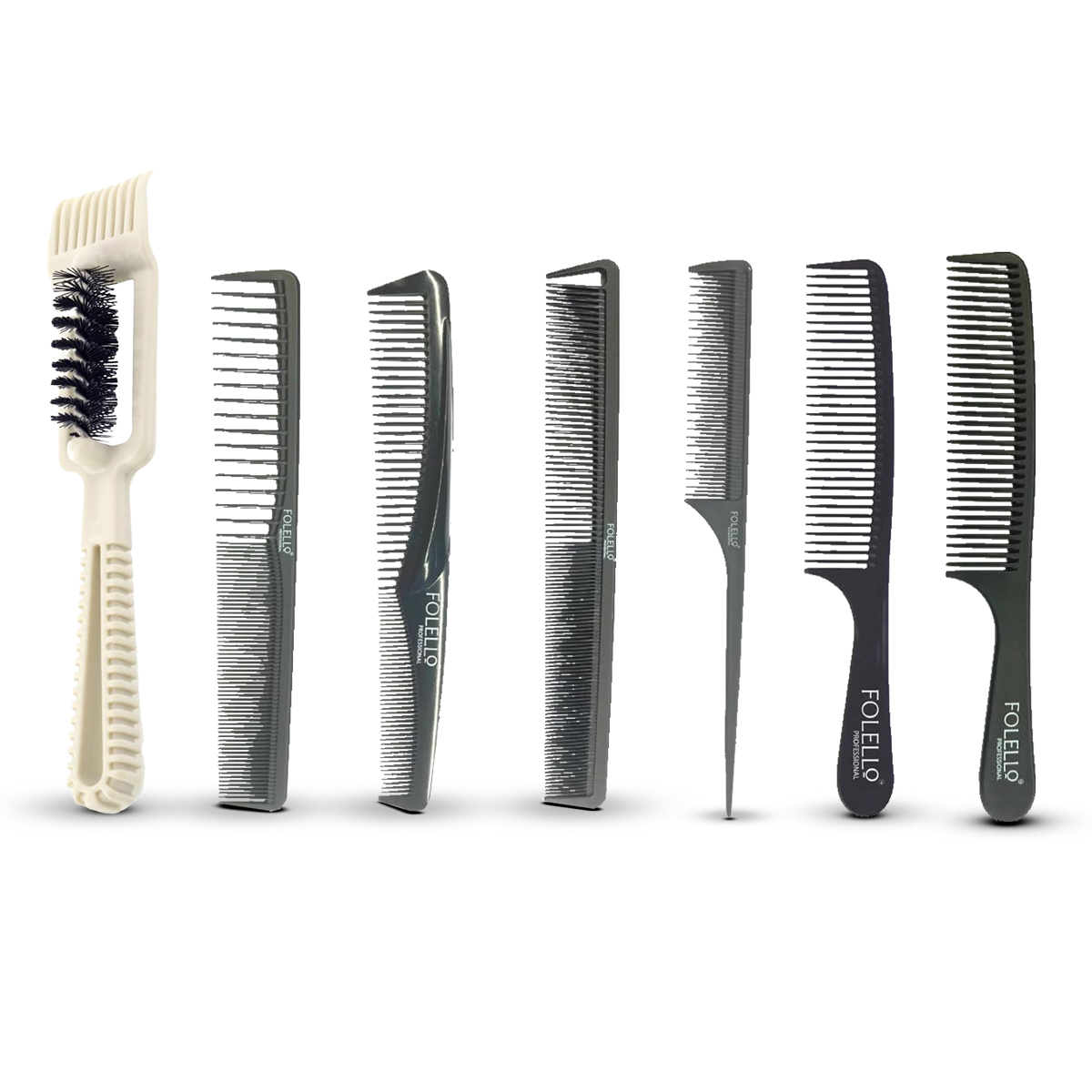Elevate your barbering skills and offer your clients exceptional cuts and styles with the FOLELLO Barber's Carbon Fiber Hair Cutting/Dressing Combs Set of 6, complete with a bonus Hair Brush/Comb Cleaner. Whether you're a seasoned professional or just starting, this bundle provides the essentials for achieving excellence. Add it to your cart today and take your barbering to the next level!