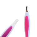 - HOW TO USE - Soften cuticle with oil, or by soaking hands in warm water. Lay the curved end flat on the nail and gently push back and lift. Use the pointed end to scrape off the excess cuticle away.
