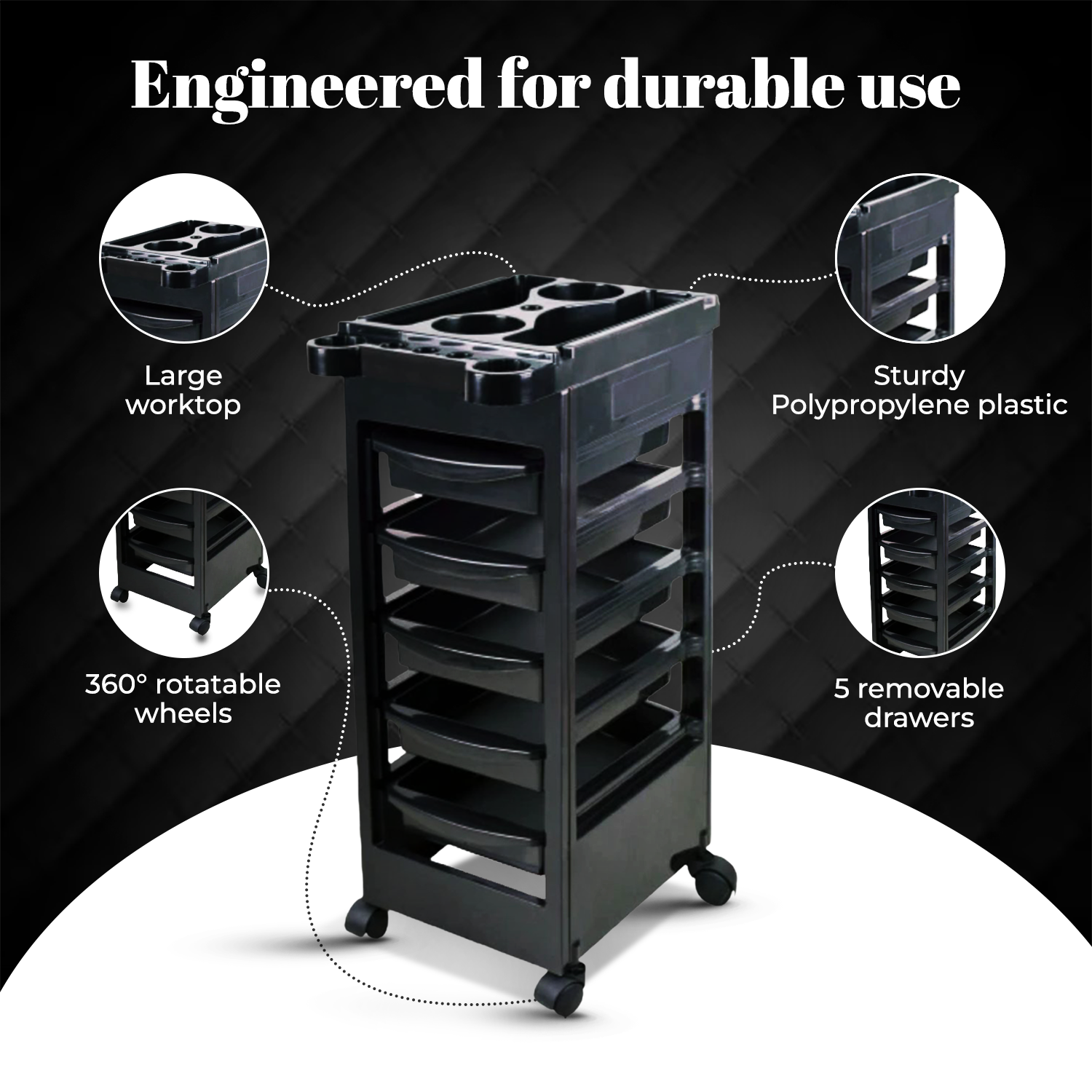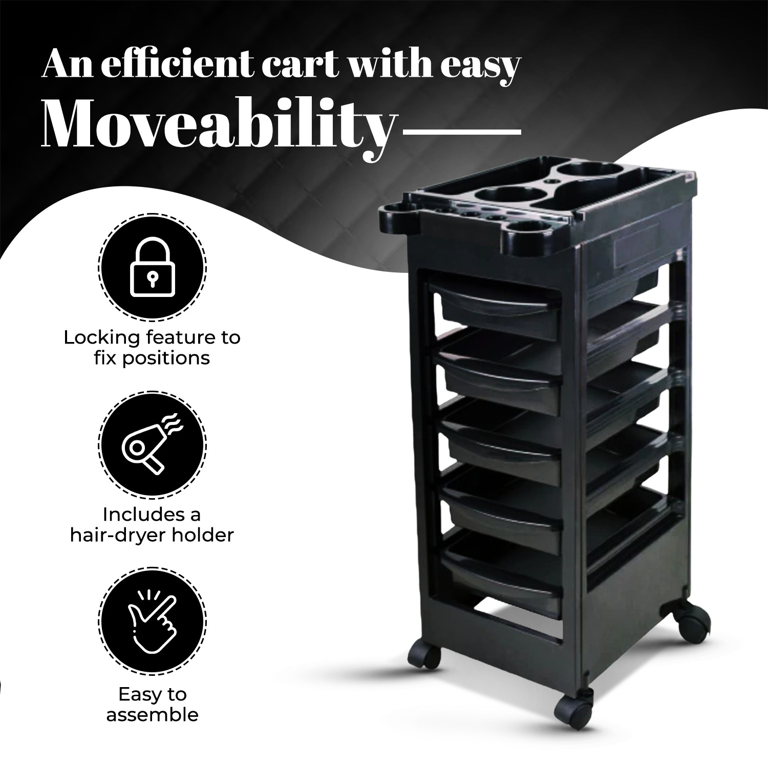 - Industrial-grade casters for easy movement.