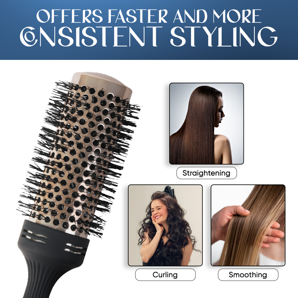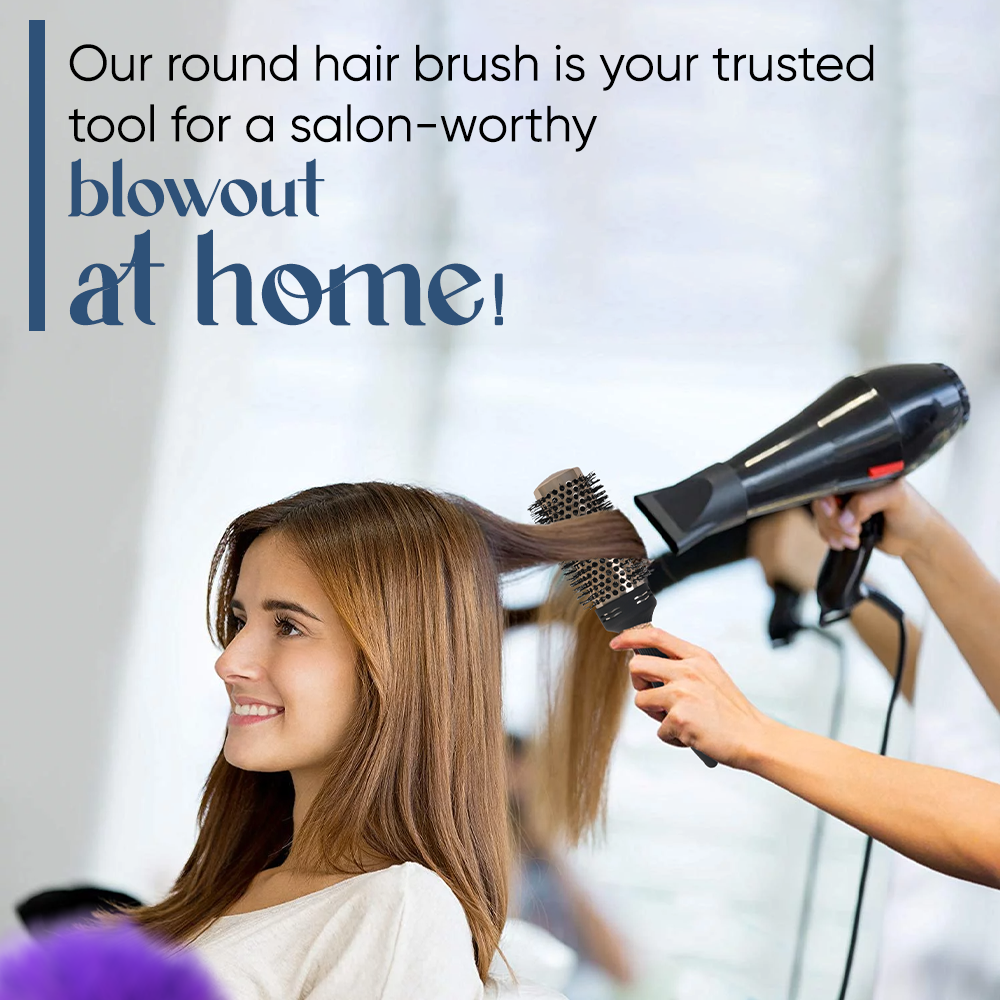 Introducing our new round ceramic hair brush for blow drying features a vented ceramic barrel for faster and more consistent styling! This brush is perfect for styling and smoothing all hair types. The ceramic barrel evenly distributes heat while the ionic bristles reduce frizz and add shine. The round shape allows for easy styling and curls while the rubberized handle provides a comfortable grip. The brush is also durable and easy to clean. Get salon-worthy hair at home with our round ceramic hair brush.