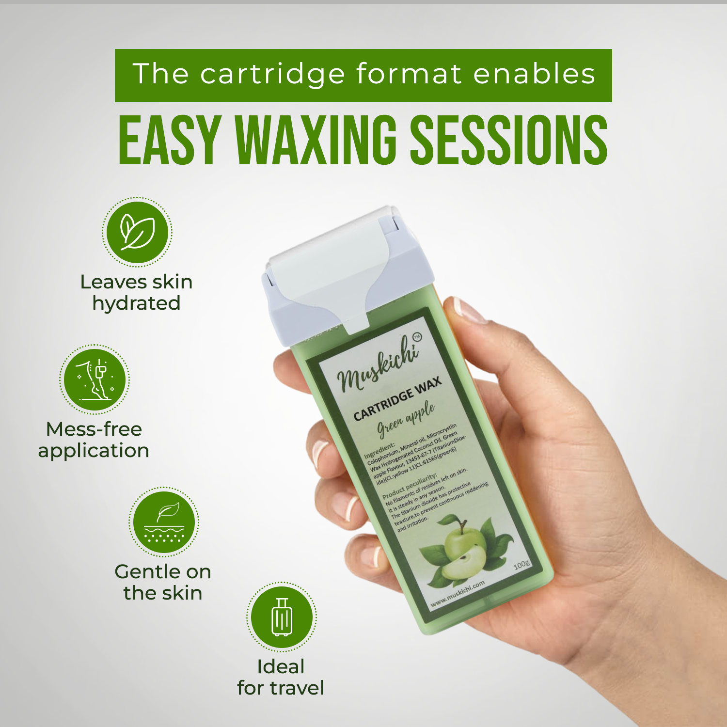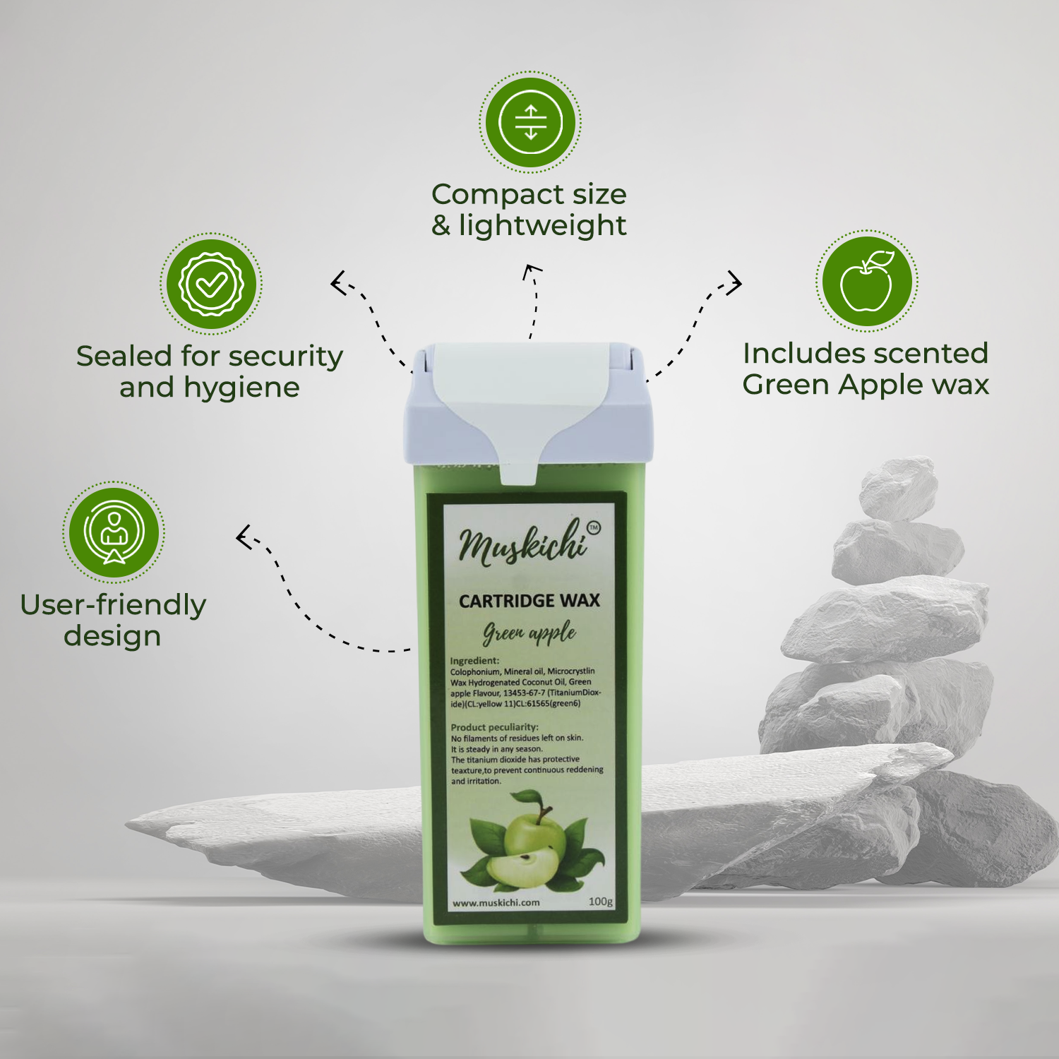 Experience the tangy freshness of our Roll-On Cartridge Wax Body Wax in the irresistible Green Apple flavor. This exceptional waxing product allows you to achieve velvety smooth skin with a hint of crispness. Whether you're a beginner or a seasoned waxing enthusiast, our high-quality wax guarantees salon-like results in the comfort of your own home. Say goodbye to unwanted body hair and hello to a rejuvenated and confident you!