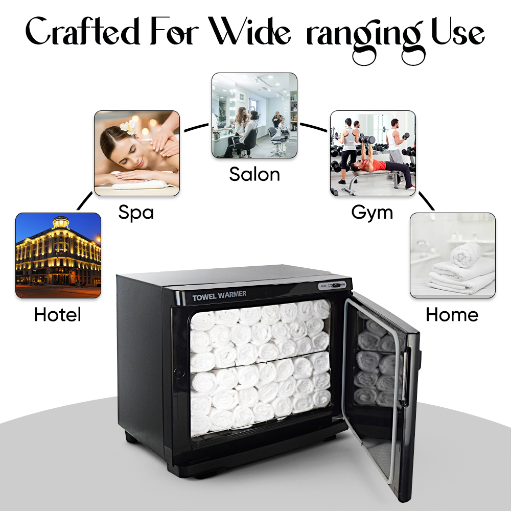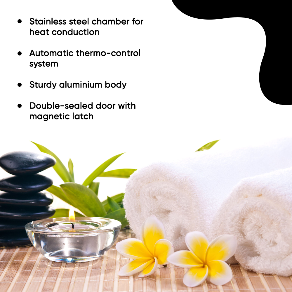 - Automatic thermo-control system keeps towels in perfect temperature for salon and spa service.