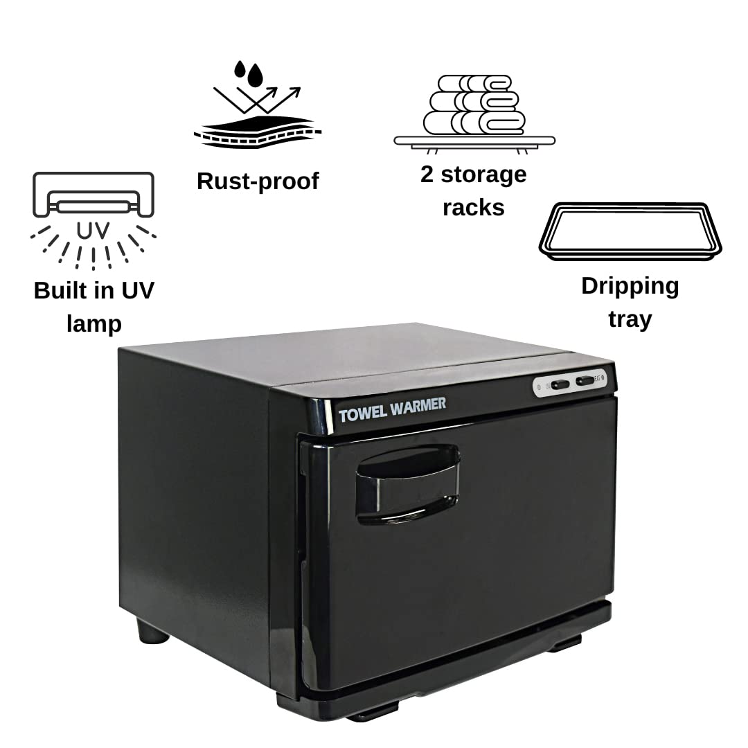 - Built-in UV lamp generates ozone to sterilize towels and different types of tools.