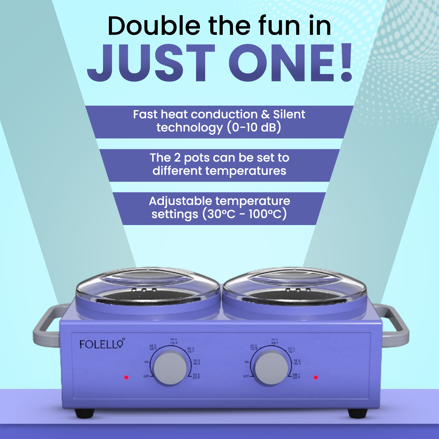 - EASY TO USE:The two pots can be set to different temperatures, which is more convenient for your use. Easy to use, On/Off Switch, the base has non-slip rubber feet.